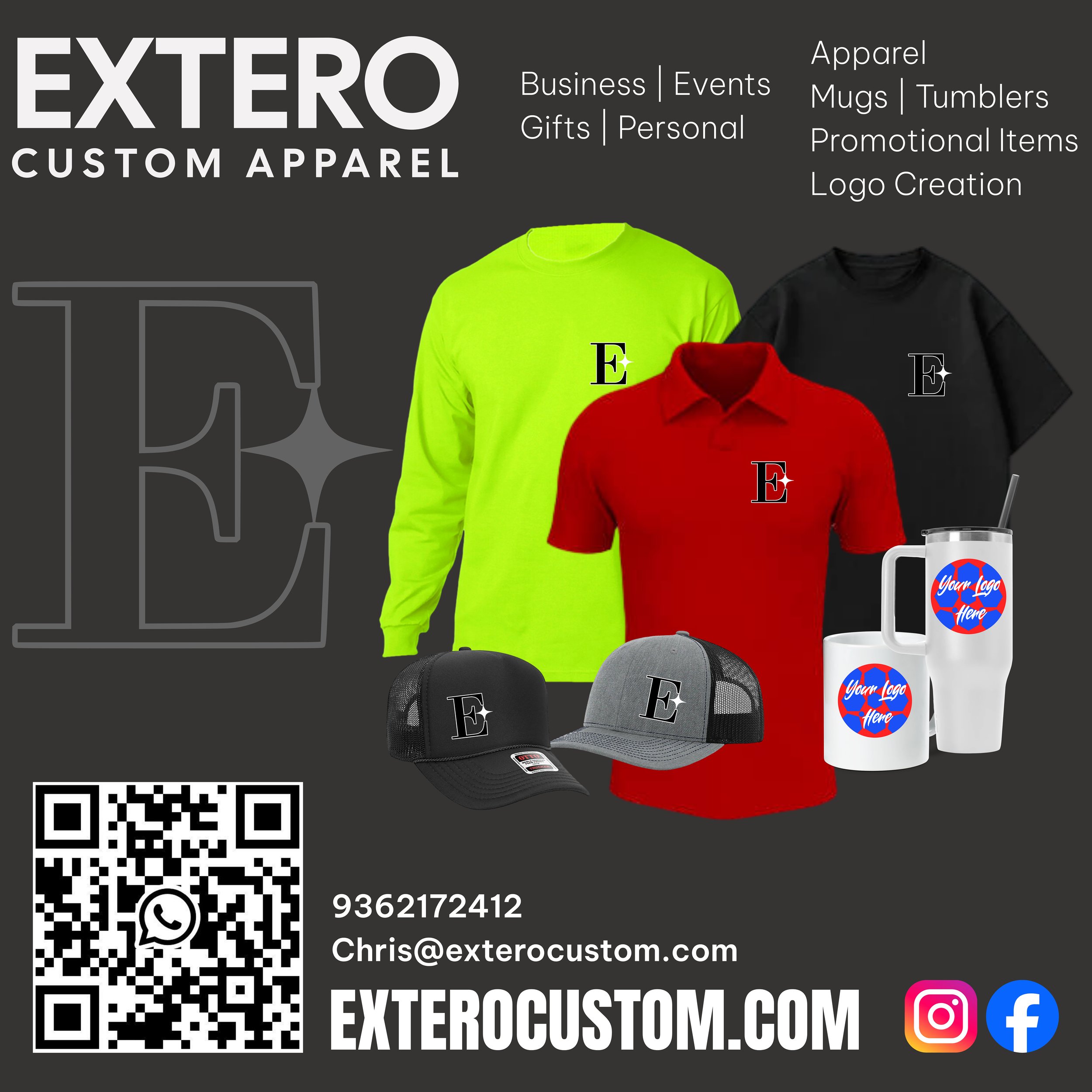 EXTERO CUSTOM aparell (936)217-2412 English(936)520-8916 EspaÑol click here to Check out our work View fullsize Business Birthdays/quinceanera Personal shirts Mugs Tumblers gift boxes About us About us About us We are a small business out of conroe, Texas; helping businesses and event organizers by making custom shirts, hats, mugs etc.